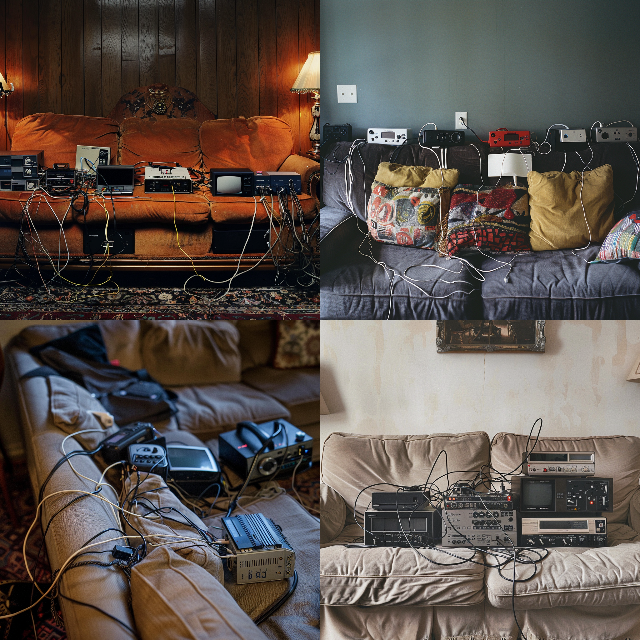 Several electronics are situated on a long cord attached to the couch --seed 3835739453 --ar 1:1 --v 6 | 2024-03-17T11:20:13Z | |