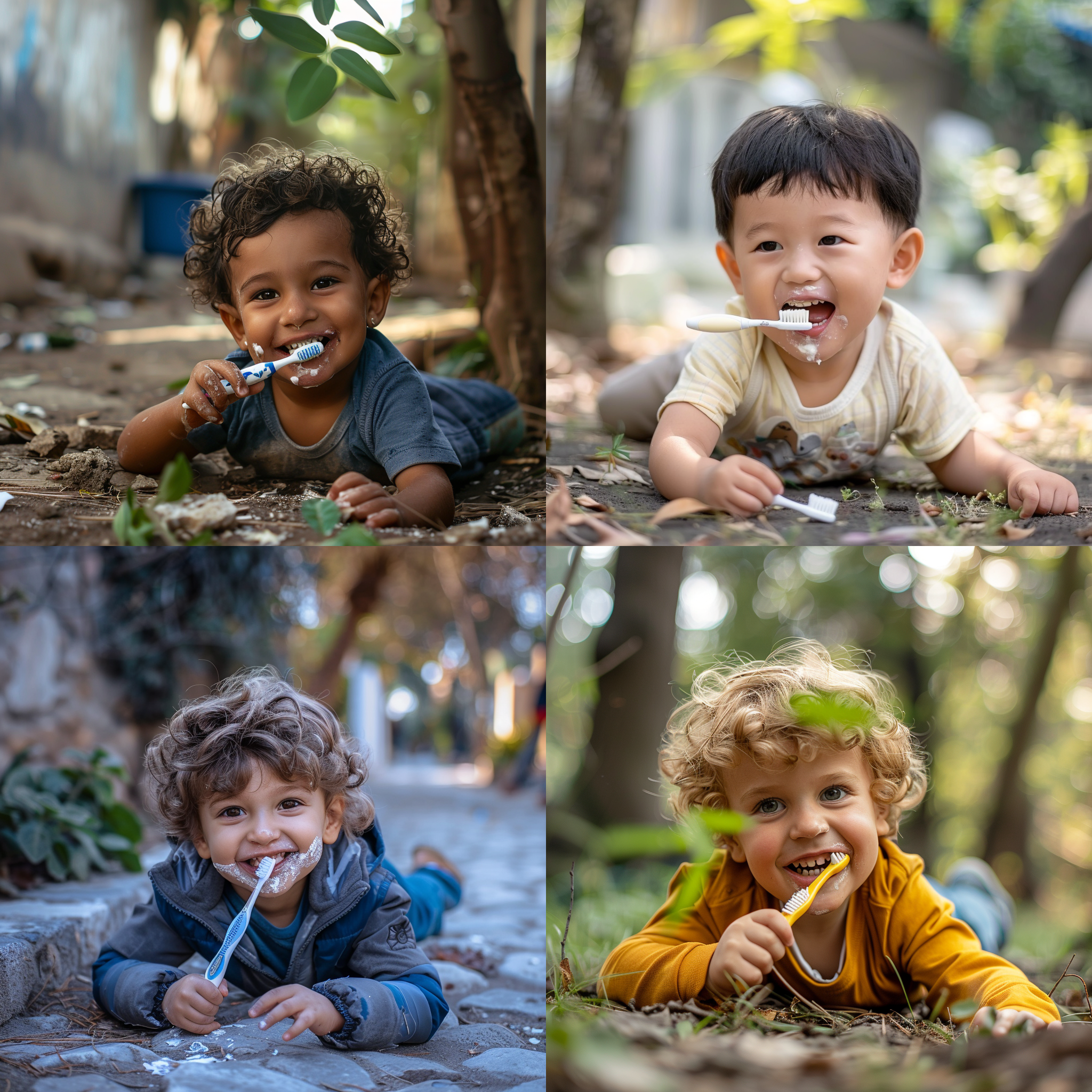 A male child brushing teeth while laying on the ground --seed 3813478736 --ar 1:1 --v 6 | 2024-03-17T11:29:33Z | |