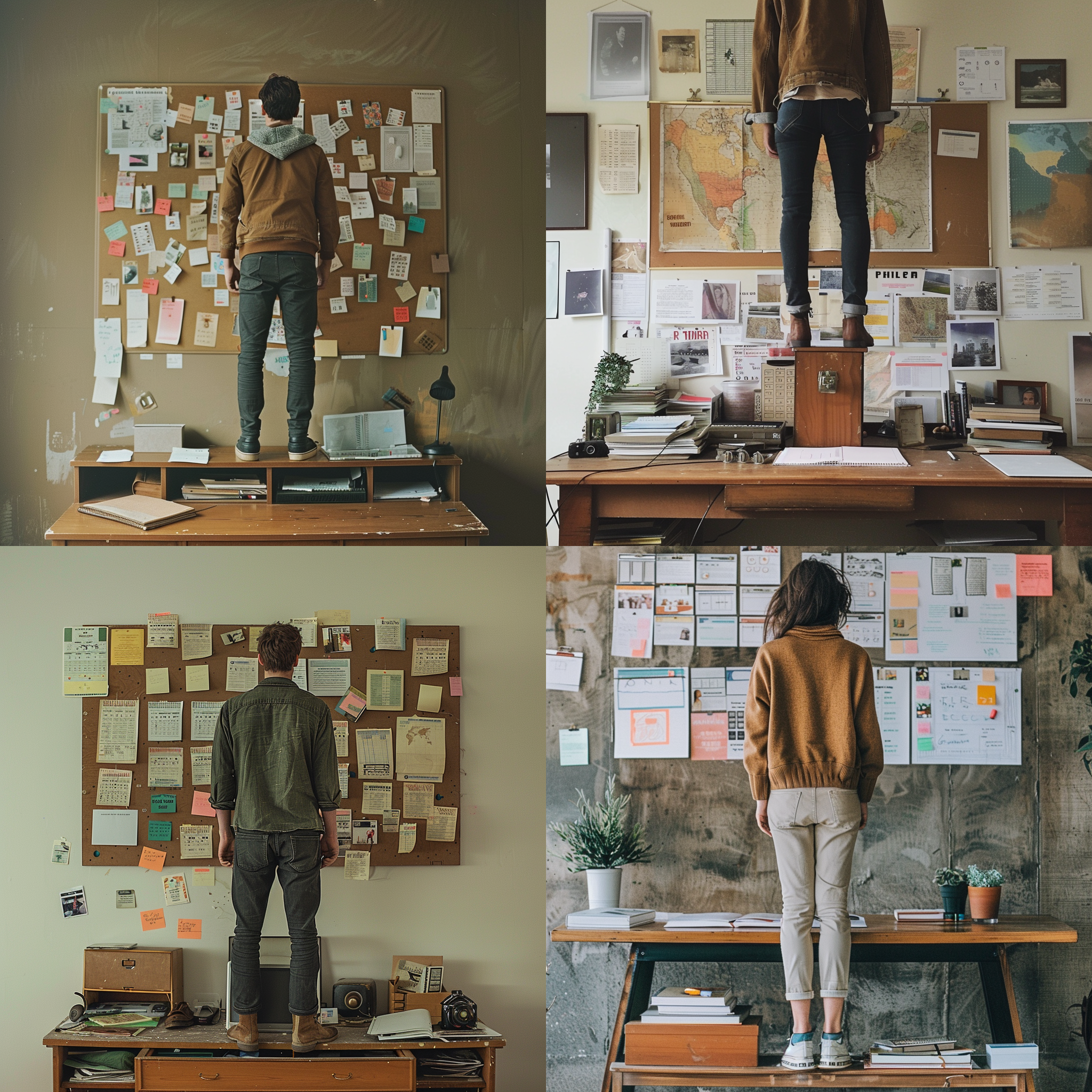 A person standing on a desk and bulletin board --seed 1054479620 --ar 1:1 --v 6 | 2024-03-17T11:30:03Z | |