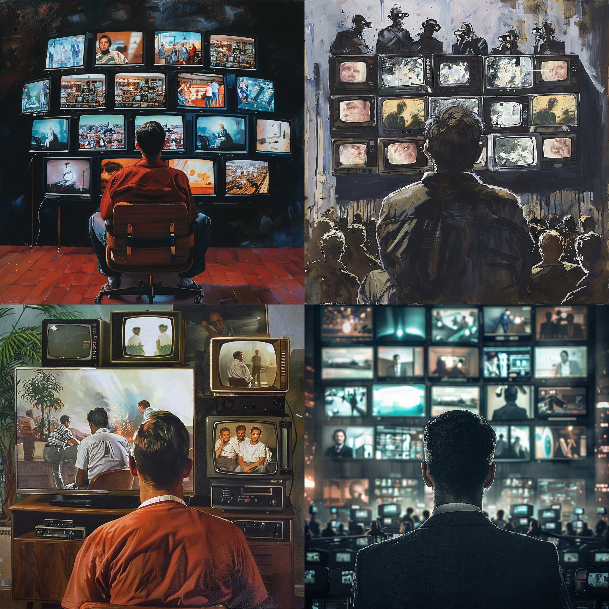 A man watching tv monitors on it A group of people on it --seed 182440584 --ar 1:1 --v 6 | 2024-03-17T11:26:06Z | |