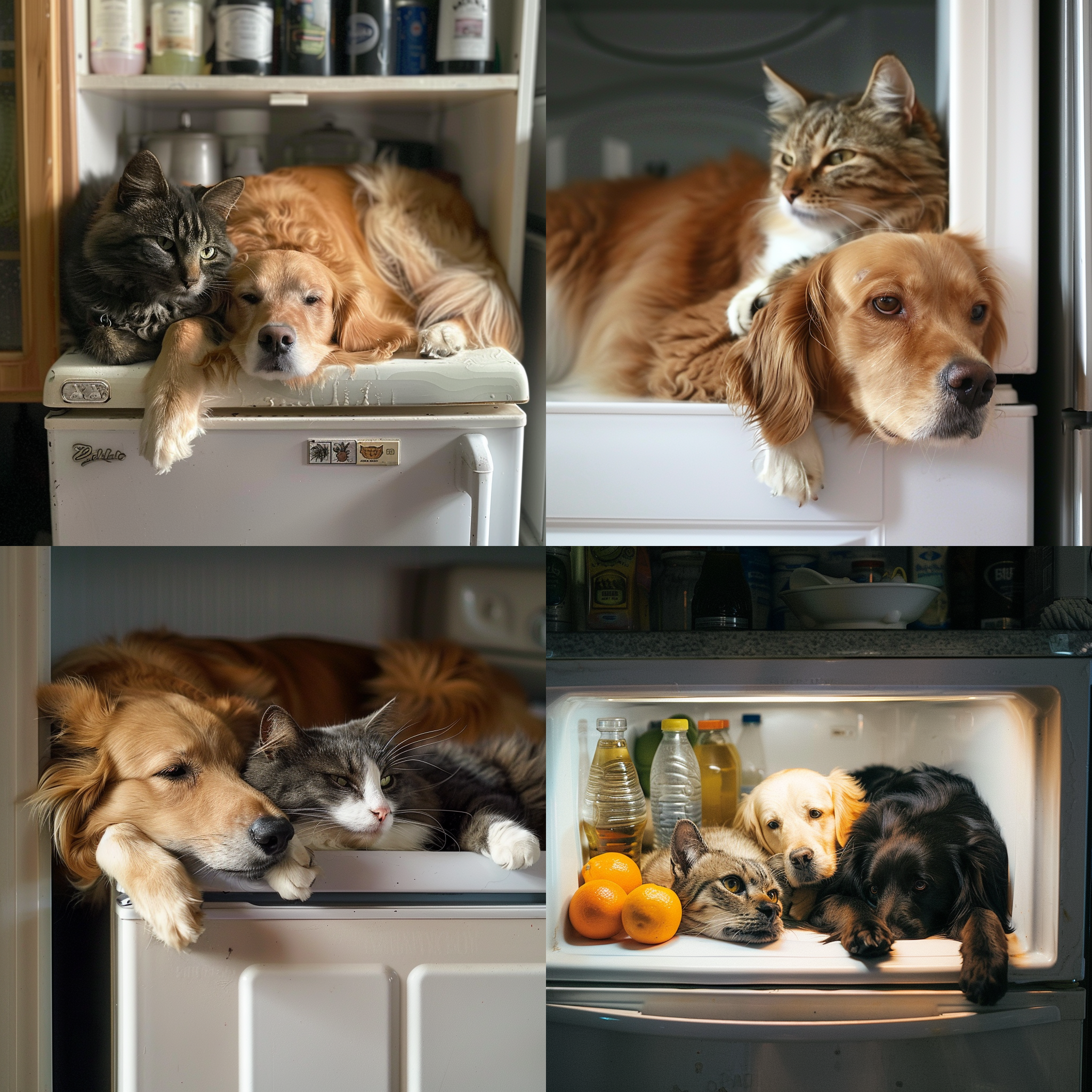 A dog and a cat lying down on the refrigerator --seed 2429997068 --ar 1:1 --v 6 | 2024-03-17T11:23:51Z | |