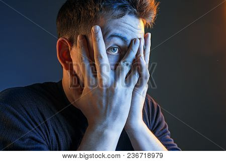Creepy Man Portrait With Shadow From Blue Eye. Scary Look Of Mature Senior Modern Handsome Man. Madn | 56,530 | |