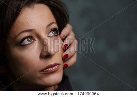 beauty latin young woman in depression, hopelessness look, fashion makeup modern close up | 82,574 | |