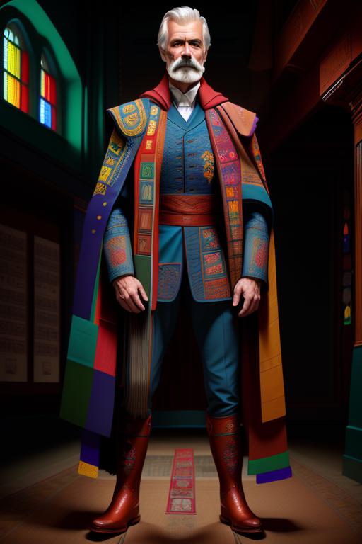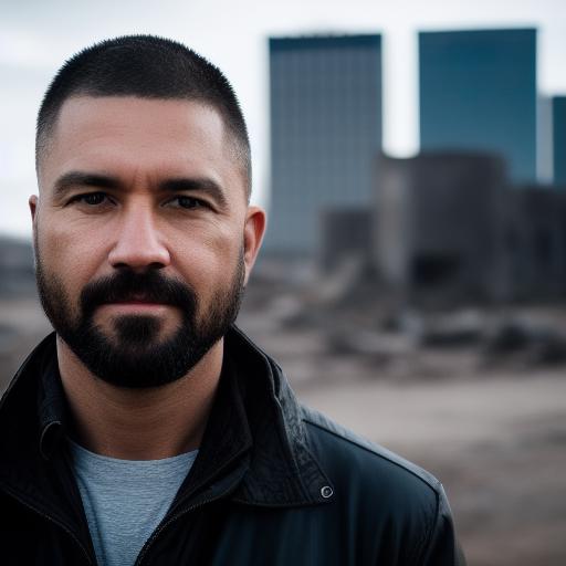 Template: a man is standing with a glowng trable behind him <lora:MaartenVerhoeven20:.71>