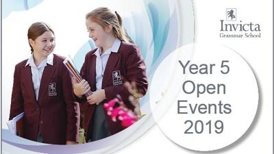 A promotional poster for the Invicta Grammar School's Year 5 Open Events in 2019. The poster features two smiling girls in school uniforms, one holding a book, with a background that includes a swirl of colors and a floral arrangement. The text on the poster includes the school's name, the year, and the event details. | Invicta Grammar School Year 5 Open Events | a5c52ab5e714759b894d3f1954917e7cd27d295b47171a162eaf3ab35e5ed8a5 | 000000011275 | 0 | 0 | 55 | 7 | 0 | 0 | |