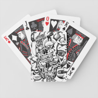 A set of playing cards with a unique design featuring a skull and other abstract elements on the back. The cards are arranged in a way that the skull is visible on the top card, with the other cards partially overlapping it. The cards are placed against a light background, and the design is predominantly black and white with some red accents. | Skulls and Meat Heads Bicycle Playing Cards | 667a0b571dba747d93a51d4bd302dc916e7d19e82a18560c933ac35775b8c14a | 000000011337 | 0 | 0 | 62 | 7 | 0 | 0 | |