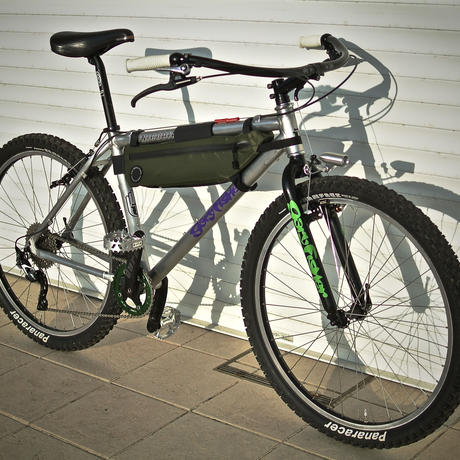 A mountain bike with a black frame and green and black seat is parked against a white wall. The bike has a black and white handlebar with a black grip, and a black and white saddle. The front wheel is on the left side of the image, and the rear wheel is on the right side. The bike has a black and white water bottle holder attached to the frame, and a black and white water bottle is placed inside it. The bike also has a black and white kickstand attached to the frame. | OLD Garyfisher Mountain Cruiser | c9aaf48e55e5f564ef533053b87a1ac3a853b9613c73e0e0c7c7521859a6f020 | 000000012439 | 0 | 0 | 94 | 4 | 0 | 0 | |
