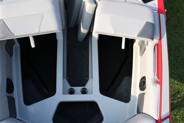 The first image shows the interior of a boat with two compartments, one on each side. The compartments are empty and have a black floor. The boat's interior is predominantly white with red accents on the edges of the compartments. There is a small black speaker on the right side of the boat. | 2019 Moomba Max at Fort Fremont Marine | b5f5aa8219bc08d4686a9eed1012ee1b018ce630bb5d6909e9204880c06d247c | 000000012474 | 0 | 0 | 53 | 7 | 0 | 0 | |