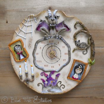 A creative and whimsical clock design featuring a large clock face with Roman numerals, surrounded by various decorative elements. There are two framed pictures, one on the left and one on the right, each with a different person's face. Above the clock, there is a bat-like creature with horns and a spider web pattern. ... | Ceramic Wall Clock - Gothic Halloween Design | 4e9d9d2f6d7708d08181ee121f2db906094f7f2d5aeadbcd52da4fd91dc58d32 | 000155327455 | 0 | 0 | 100 | 7 | 0 | 0 | |