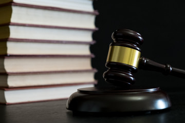 A gavel with a golden handle and a black head is resting on a wooden block, positioned in front of a stack of books. The books are arranged vertically and are of various sizes, with the largest book at the bottom and the smallest at the top. The scene is set against a dark background, and the gavel is the focal point o... | Judge gavel beside pile of books on wooden background | e375f8a55bfbfd4a5a7fb907cf39588c8a810567f739cd423dca39c8c55137f9 | 000155327423 | 0 | 0 | 65 | 9 | 0 | 0 | |