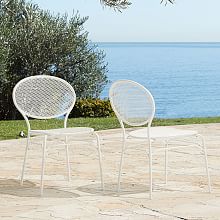 Two modern white plastic chairs with a wicker design are placed on a stone patio overlooking the ocean. | Kyra Outdoor Bistro Chair | 518eaeff1efb556e4bd7557eba608bf8449288b93f954e1ff22f5a217b865f5e | 000155327549 | 0 | 0 | 18 | 4 | 0 | 0 | |