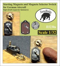 The image displays a close-up of a model airplane with a detailed scale model of a magnet and selector switch. The model is presented on a wooden surface with a hand holding a small magnet, and there are various parts of the model airplane and switch visible. The image is labeled 'Starting Magneto and Magneto Selector ... | Taurus Models 1:32 Magneto for German aircraft D3230a *NEW!* Wingnut Wings | a84eeeb2aed45f4d0364b99c1c3884438bba3fe48a0cd7645e72182abe416e4a | 000155328108 | 0 | 0 | 68 | 11 | 0 | 0 | |