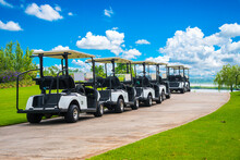 A row of golf carts is parked on a paved path next to a grassy area. The sky is clear with a few clouds, and there are trees in the background. | Golf Cart On Golf Course, Park... | d6d64016008788b33632d6f94a04eef12811daba938b555ad3e212d9d0e7bfe8 | 000155328630 | 0 | 0 | 31 | 6 | 0 | 0 | |