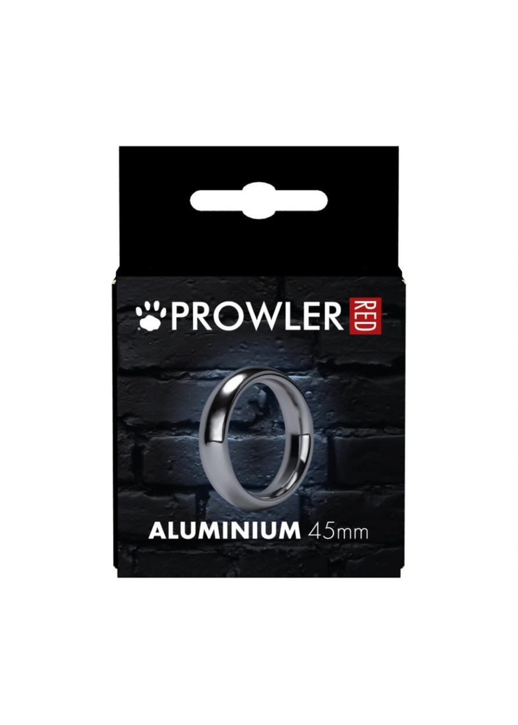 A close-up image of a black packaging box with the word 'PROWLER' in white, centered at the top. Below the word, there is a white circle with a black outline, resembling a ring. The packaging is set against a dark brick wall background. | Prowler Prowler Red Aluminum Cock Ring 45mm | 03423380a275c1eb941b0167f854716eeb276e6eec11e8947cfeef8f7b5cfce1 | 000155328748 | 0 | 0 | 43 | 7 | 0 | 0 | |