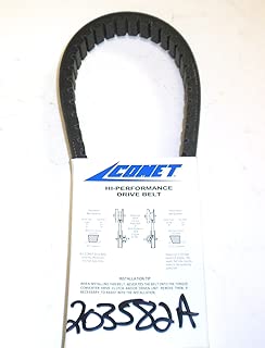 A black rubber tire with a white label attached to it, featuring the text 'IONET' and 'HELIPERFORMANCE DRIVE BELT' in blue and white, respectively. The label also has a handwritten serial number '2020300339A' in black ink. | Original 203582 Comet Go Kart Belt | 4fd3d9210719816fa7766a8335755234552b351d2df3e054603625fe3e9628bf | 000000013430 | 0 | 0 | 36 | 6 | 0 | 0 |