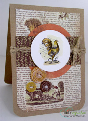 A handmade card with a vintage design featuring a rooster illustration in the center, surrounded by a textured background with a brown and orange color scheme. The card has a ribbon tied around it, and there are three buttons with a floral design attached to the front. The card also includes a small image of a cow and a man working on a wheelbarrow, along with text and other decorative elements. | New Day Rooster | 16d28925e1f8fb20a80f4ac7dbaead462e910e33785fa84478b325be5b3348e4 | 000000013855 | 0 | 0 | 71 | 3 | 0 | 0 | |