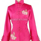 A pink jacket with a floral embroidery design on the front is displayed on a mannequin. The jacket has a fitted silhouette with a high collar and long sleeves. The embroidery features a large rose with detailed petals and leaves, and there are smaller floral patterns scattered throughout the jacket. The mannequin is wearing a white shirt underneath the jacket. | Unique Peony Embroidered Silk Jacket | 7675f326eedc5725fce6d3e8fa0703ca64b59b7f867c864d15c1f98f72da991e | 000000013916 | 0 | 0 | 60 | 5 | 0 | 0 | |