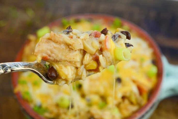 A close-up image of a spoonful of a dish with a mix of rice, beans, and vegetables, including corn and peas. The dish appears to be a casserole with a cheesy sauce. The spoon is filled with the casserole and is being lifted out of the bowl, which is placed on a wooden surface. The lighting is soft and highlights the textures of the ingredients. | The Ultimate Instant Pot Fiesta Chicken | b375fec0c76367306e0bc9eab86c6063441dae4b408555d25aa2acf8969d19c4 | 000000013968 | 0 | 0 | 65 | 6 | 0 | 0 | |