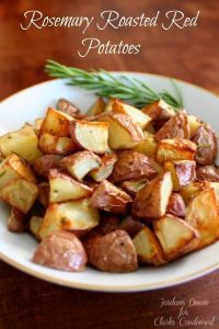 A plate of roasted red potatoes with a sprinkle of herbs on top. The potatoes are cut into wedges and are golden brown in color. There are several potatoes on the plate, and they are arranged in a way that showcases their texture and color. The plate is placed on a wooden surface, and there is a decorative text overlay at the top of the image that reads 'ROSEMARY ROASTED RED POTATOES'. | Rosemary roasted red potatoes | 0e48a8b2c44a10fe0e6add786cf49ce49bcca32e832e6cc1c637d9b077cf67dd | 000000014015 | 0 | 0 | 72 | 4 | 0 | 0 | |