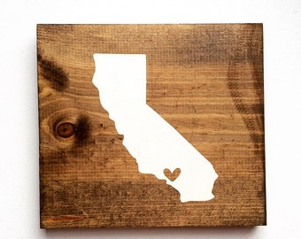 A wooden board with a carved map of California and a heart shape in the center of the map. The board has a textured surface with visible wood grain and knots. The map is white, and the heart is also white with a black outline. The board is mounted on a wall, and the lighting casts a shadow on the wall to the right of the board. | California Sign | 4400fc09c1c0d32c2a358baa8b62fcf7308dbb4824c73b52895d7d880bc5a51f | 000000014151 | 0 | 0 | 67 | 2 | 0 | 0 | |