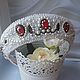 A white ceramic vase with a floral pattern and a large red gemstone on top is placed on a white surface. The vase contains a single white flower with a yellow center. | Wedding crown in Russian style 'Roses in the snow', Hair Decoration, St. Petersburg, \xd0\xa4\xd0\xbe\xd1\x82\xd0\xbe \xe2\x84\x961 | 88e0d52bcbdb46ba2d11b3d4607e988ddbdc1c41fb0a1e642d213c7c1dd9c3cb | 000000014329 | 0 | 0 | 32 | 15 | 0 | 0 | |