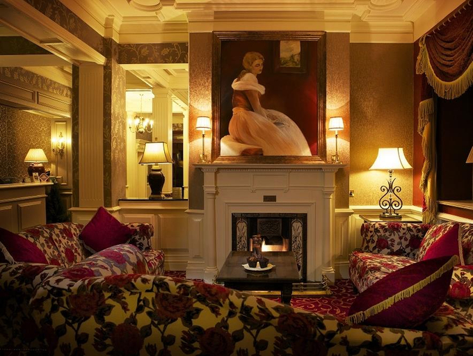 A cozy living room with a fireplace, two sofas with floral patterns, and a painting of a woman in a white dress above the fireplace. The room has a warm ambiance with a lit fireplace, and there are two lamps on either side of the fireplace. The walls are adorned with wallpaper, and there is a mirror on the left wall. | Sligo Southern Hotel, | d15fcb5b2e58e2d22c77a4429c21cb6311340ff325fec6d1ffa55a9fefd22a81 | 000000014308 | 0 | 0 | 61 | 3 | 0 | 0 | |