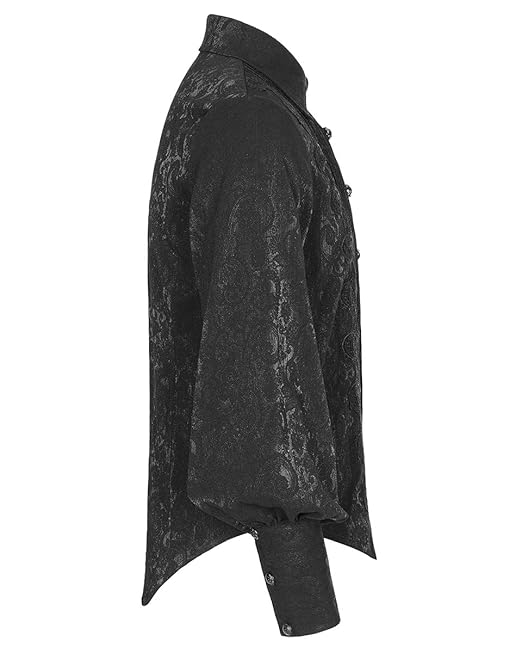 A black Victorian-style coat with a lace-up front and a high collar is displayed on a white background. The coat has a fitted silhouette and is adorned with intricate lace details on the sleeves and body. The collar is high and rounded, and the cuffs are long and lace-up. The coat is paired with a black top hat that is placed on the right side of the coat, slightly above the waist level. | Punk Rave Mens Gothic Cloak Cape Long Black Faux Leather Brocade Steampunk Vampire Regency Aristocrat | f81d0262ab829e5ac67e5bebf6ac797b59b96584e36056e410ffcdb0b1f83072 | 000000014183 | 0 | 0 | 73 | 15 | 0 | 0 | |