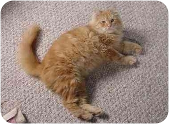 A fluffy orange cat with white paws and a white patch on its chest is lying on a beige carpet. The cat has a long tail and is looking directly at the camera with its eyes open. There is a pink object partially visible in the bottom left corner of the image. | Domestic Longhair Cat for adoption in Lincoln, Nebraska - Peanut | d95491a8a0cbc3c2924bd2f9019646abc4f6eea1074df8e4ce8c278e7b727955 | 000000014687 | 0 | 0 | 52 | 10 | 0 | 0 | |