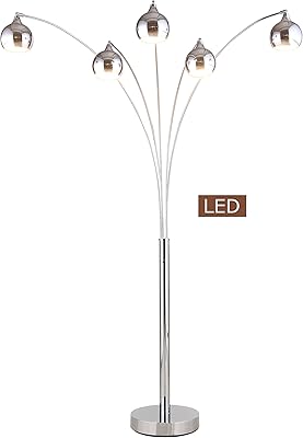 A modern floor lamp with a sleek, metallic finish and a unique, curved design featuring multiple spherical shades. The lamp stands on a circular base and has a tall, slender pole that supports the shades. The word 'LED' is discreetly placed on the lower part of the lamp. | Rivet 5 Arm Brass And Marble Arc Lamp 89 Quot H With Bulbs | c6db36a33f2f3cfecb751ecb268a87f3239eb0e2c4e33395b2d07d98b99fdc40 | 000000014670 | 0 | 0 | 48 | 13 | 0 | 0 | |