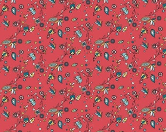 A close-up view of a red fabric with a detailed pattern of various shapes and designs, including flowers, leaves, and other decorative elements. The fabric has a dense and intricate design, with a multitude of colors and textures that create a rich and complex visual experience. | Breeze Floral - Picnic Whimsy - Birch Fabrics - Organic Cotton Poplin by the Yard | fd75f245c691294e43431d5ddf5481ea56c8d339a68032cf16c91a48e35f64d8 | 000000015320 | 0 | 0 | 46 | 15 | 0 | 0 | |