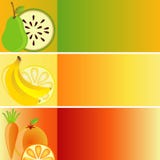 A stylized illustration of various fruits arranged in a vertical row. From top to bottom, there is a pear with a green and yellow gradient, a slice of watermelon with a green and yellow gradient, a banana with a yellow gradient, a lemon with a yellow gradient, and a carrot with an orange gradient. The fruits are separated by horizontal lines, and the background transitions from a warm orange at the top to a cooler blue at the bottom. | Set of Banners: Fruit Theme Royalty Free Stock Image | bf90e9a8a59e3cf98adfdd294e99c64e2377411748944e63d22f8d5320ec5723 | 000000015377 | 0 | 0 | 79 | 9 | 0 | 0 | |