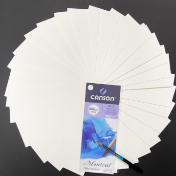 A circular arrangement of white paper sheets with a purple and blue ink pad and a black paintbrush in the center. The ink pad has the word 'Canon' on it, and the paintbrush has a blue tip. The papers are neatly stacked in a spiral pattern, and the ink pad and brush are placed on top of the papers. | Picture of Canson Montval 300gsm Mini Artbook with Brush | 9dbb63c99ae731a495b257f5da3e9ac0352734ee377dec4028f7baf04bd477b5 | 000000015334 | 0 | 0 | 59 | 9 | 0 | 0 | |