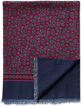 A blue blanket with a red and black paisley pattern is draped over a wooden chair. | Charles Tyrwhitt Burgundy Paisley Wool Scarf | bb6c9b22e26b63bae5003cf22527e15e22d7f3a84d8858300da6b0a058f05804 | 000000016522 | 0 | 0 | 16 | 6 | 0 | 0 | |