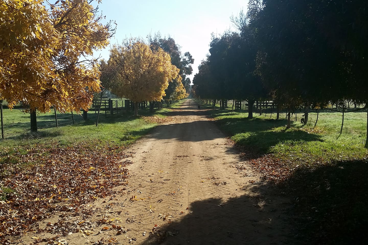 A dirt road lined with trees with yellow leaves, indicating autumn season. The road is surrounded by a grassy area with fallen leaves scattered on the ground. The trees are casting shadows on the road, and the sky is clear. | Quiet laneways, open paddocks and nearby quiet dirt roads for horse riding | e261a47b22086f76c7bbbd4ea76bccd61ef954e06287659596b547c37069f853 | 000000016686 | 0 | 0 | 40 | 12 | 0 | 0 | |