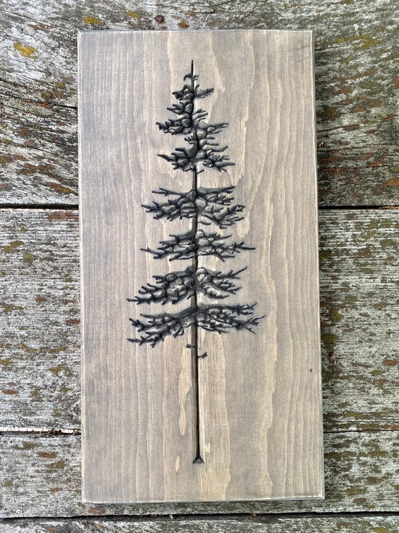 A detailed black and white etching of a pine tree is displayed on a wooden surface. | Pine Tree Carved Wood Wall Hanging, Tree Silhouette, Single Tree | 668b774fe4781e01423aa28ca10b2ba455028e24e8abbc598738e3da44912b7e | 000000016721 | 0 | 0 | 16 | 10 | 0 | 0 | |