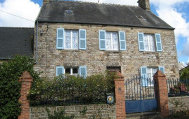 A quaint stone house with a blue door and a blue gate, surrounded by a brick fence and a bush. The house has two windows with blue shutters, and there is a sign with a yellow background and black text on the fence. | FR-1-362-104 - ST MAURICE EN COTENTIN - 6 pers, 96 m2, 4/3 | d5eb3c754c1fadba8ec6bb465b4f7581eb03022af8d2954bea5261ce66be9fd1 | 000000016664 | 0 | 0 | 43 | 12 | 0 | 0 | |