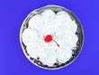 A close-up view of a slice of cheesecake with a cherry on top, placed on a blue surface. The cheesecake is garnished with whipped cream, and the slice is framed by a decorative metal ring. | canvas print picture - Red cherry from marmalade on white creamy flowers of a biscuit cake. | 2d4ac36ad7a8d1b6dc0713e356caa39d41f333e63f1ba27ed27cc79213b265a3 | 000000017524 | 0 | 0 | 35 | 16 | 0 | 0 | |