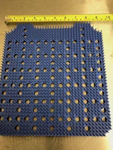 A blue plastic surface with a grid pattern is placed on a metal surface. A ruler is positioned next to the blue surface, indicating its dimensions. The blue surface has a series of circular holes evenly spaced across its surface, creating a pattern that resembles a grid. | Used Rubber Matting for instrument trays | a7794d2e5a9528d0f48647f703d6add0182edcddb7d154295d384b69bbe76d02 | 000000017493 | 0 | 0 | 47 | 6 | 0 | 0 | |