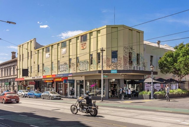 A bustling city street scene with a yellow building adorned with graffiti on its facade. The building has a flat roof and is surrounded by other buildings. There are multiple people walking on the sidewalk, and a motorcycle is parked on the street. A car is driving down the street, and there are several pedestrians crossing the street. The sky is clear with a few clouds, and there are power lines above the street. | 276-294 Brunswick Street, VIC 3065 | 1a71436e19eabd2f164a185808a6286ff82612db2477a7a4ad66a522c432f1d3 | 000000018262 | 0 | 0 | 74 | 5 | 0 | 0 | |