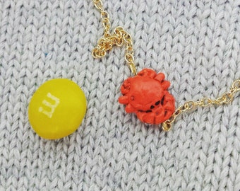 A yellow M&M's candy and a red candy with a gold chain are placed on a white surface. | Tiny Crab necklace on a 18 inch gold plated or sterling silver chain. | effb3eaa0cc26072eb7de2bb1f7364a974e1710697f8271afc4a0c7a52ffe170 | 000000018415 | 0 | 0 | 18 | 13 | 0 | 0 | |