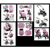 A collection of pink baby strollers and accessories is displayed in a collage format. The collage consists of nine images, each showcasing a different aspect of the strollers and accessories. The top left image shows a stroller with a pink canopy and a red flower on the seat. The top right image features a stroller with a pink canopy and a black frame. The bottom left image displays a stroller with a pink canopy and a black frame, while the bottom right image shows a stroller with a pink canopy and a black frame. The middle left image presents a stroller with a pink canopy and a black frame, and the middle right | thumb-3 in 1 Combi kinderwagen White Lux - 4-3 | 10f51ec14565e279972e9c4e7bf29f92a481fe0dbdefc1c83488e0e97f8b7f14 | 000000018562 | 0 | 0 | 113 | 9 | 0 | 0 | |