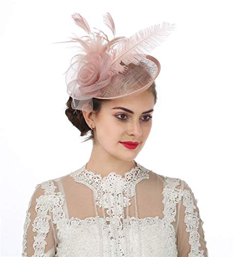 A woman is wearing a white dress with lace details and a large, elaborate pink feathered hat. | 9051edd327dd6 SAFERIN Fascinators Hat Sinamay Flower Mesh Feathers on a Headband and a Clip Tea Party Headwear | 1652762c33c823e368545da636c13664d619c48617225e6c480fa1873a2ae483 | 000000018602 | 0 | 0 | 17 | 17 | 0 | 0 | |