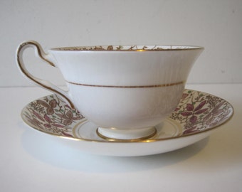 A white porcelain teacup with a gold rim and a floral pattern on the saucer is placed on a white background. | Vintage ROSINA Tea Cup and Saucer Bone China Gilding Made in England E590z | 96963e3246915d09f80a6c066a632002ed6d6ea3b925787028e714c775cec383 | 000000018637 | 0 | 0 | 21 | 13 | 0 | 0 | |