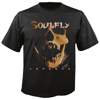 A black t-shirt with a graphic design featuring a skull with a snake coiled around it, the word 'Soulfly' in orange above the skull, and the word 'Savages' in orange below the skull. The design is centered on the chest area of the shirt. | Herren T-Shirt Soulfly - Savages - NUCLEAR BLAST, NUCLEAR BLAST, Soulfly | 0dda9e7977c77d1394043c9f0896d0318e885bbb55fbfcc2ae9290276a2851c6 | 000000018560 | 0 | 0 | 44 | 11 | 0 | 0 | |