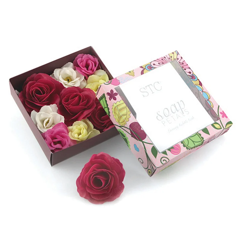 A pink box with a floral design is open, revealing a collection of red and yellow roses. A single red rose with a green stem is placed outside the box, in front of it. The box has a label that reads 'STC SOAP PETALS' with the words 'Soap Petals' in a smaller font below. | Handmade soap flower for Valentine's day gift | e399e8a38b1901ef14b72bef38c256d68a388057ed40add74baaa067f60cdafc | 000000018510 | 0 | 0 | 54 | 7 | 0 | 0 | |