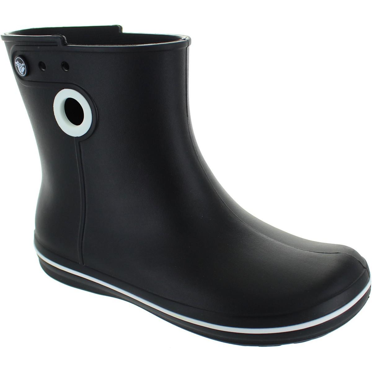 A black rubber rain boot with a shiny finish and a white sole is displayed against a white background. The boot has a round, white logo on the side and a black strap with a buckle at the top. | d85ad30d0 Crocs\xe2\x84\xa2 Jaunt Shorty Boot Women s Wellington Boots In Black in Black ... | e8ad24b1dea015c7dbb33c0bdbd16d59c90689e430bdbb4bc2bd4e03d5f217c6 | 000000018766 | 0 | 0 | 39 | 14 | 0 | 0 | |