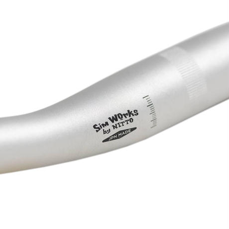 A close-up of a silver bicycle handlebar with the words 'SIN WORKS' and 'BY NITTO' engraved on it. The handlebar is against a white background. | *SimWorks by NITTO* Mowmow Bar | e975c5784ec99e77664240ebf1da2e1d671f3af782df2b9e29729cc51d0b11a8 | 000000018771 | 0 | 0 | 25 | 5 | 0 | 0 | |