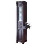 A modern, dark brown, freestanding cabinet with a flat top and a single door, featuring a digital clock and a water dispenser, is displayed against a white background. | Chelsea SS-CHE-020 Espresso Kaemark Salon Tower Station + Free Shipping! | edaceaa808e4f693ce73de647cfe7464232e6df61627ea368dd4b166c1523e14 | 000000019016 | 0 | 0 | 28 | 10 | 0 | 0 | |