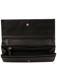 A black leather wallet with a silver zipper closure is displayed against a white background. The wallet has a smooth texture and a shiny finish. It features a central zipper compartment with a silver zipper pull, flanked by two smaller compartments on either side. The wallet is open, showing the interior with a visible stitching detail on the zipper compartment. | Wilsons Leather Black Nine West Colorblock Faux-leather Wallet | 0f164cde9d1a1320b189b286d7e72ef54635c7fa25351547c8266defc0c32cf1 | 000000022250 | 0 | 0 | 60 | 8 | 0 | 0 | |