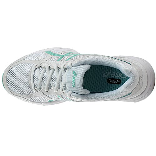 A white and teal Asics running shoe with a blue and white logo on the side is displayed against a white background. The shoe has a mesh upper with a combination of white and teal colors, and the tongue is white with teal accents. The heel counter is teal, and the outsole is white with teal accents. The shoe is laced up, and the laces are white with teal aglets. | 4 White silver 7 Asics B Us aruba Gel Women's contend qwWSHHB4A | 1dc385e093eaa07dbb837d26f1dc3d63f24577fd50acd4b569b4c252f54e3dbe | 000000022292 | 0 | 0 | 70 | 12 | 0 | 0 | |